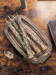 DISCLAIMER - Keep a close eye on this candle while burning. The herbs and spices can cause larger flames than a typical taper candle.